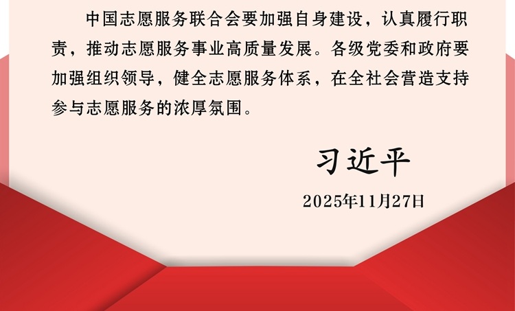 习近平致信祝贺中国志愿服务联合会第三届会员代表大会召开强调 大力弘扬志愿精神传递真善美传播正能量 为强国建设民族复兴伟业贡献志愿服务力量