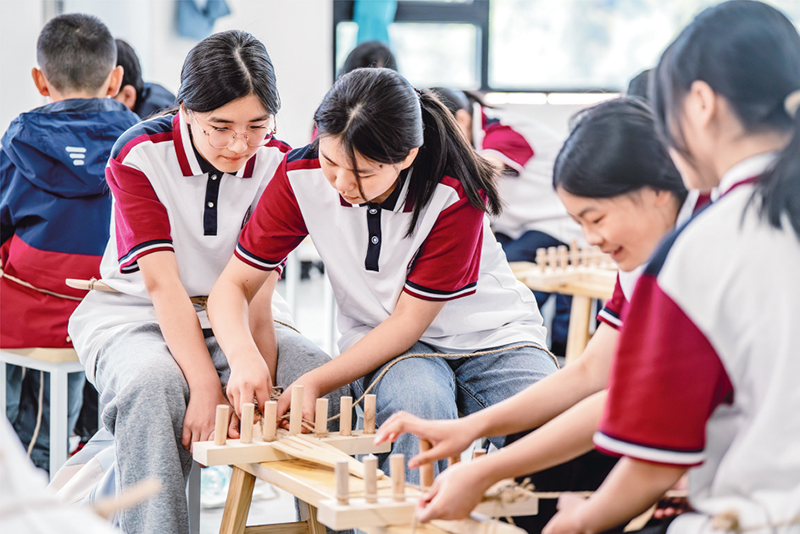 近年来,各地不断加强科学、技术、工程、数学教育,激发青少年学生对科学知识的兴趣,培养学生研究和创造能力。图为2025年5月18日,在江西省抚州市金溪县,学生在进行机器人赛前的组装、调试。 (人民图片 邓兴东/摄)