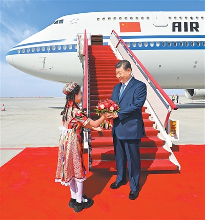 9月23日下午,中共中央总书记、国家主席、中央军委主席习近平率中央代表团乘专机抵达乌鲁木齐,出席新疆维吾尔自治区成立70周年庆祝活动。习近平等在机场受到新疆各族群众的热烈欢迎。 |